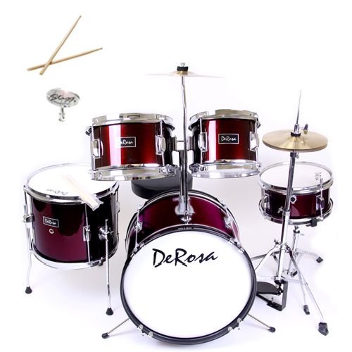 The Bridgecraft 5-Piece 16-Inch Junior Drum Set is a complete drum set designed for the up and coming drummer! With fully tunable heads, metal hardware and real wood shells, this kid size drum set holds up to your child's playing. The stool, stands and drums are height adjustable for a growing child. Recommended for ages 3 to 10 years olds up to 5' tall and makes a wonderful music gift for kids! Some assembly is needed and easy set-up instructions are included.Great collection of DeRosa 5-Piece 16-Inch Junior Drum Set Bundle with Drum Key and Drum Sticks - Wine Red along with far more through one-day shipping and delivery (on eligible items). Secure web based purchasing. Direct delivery service. Online US-based support services.
